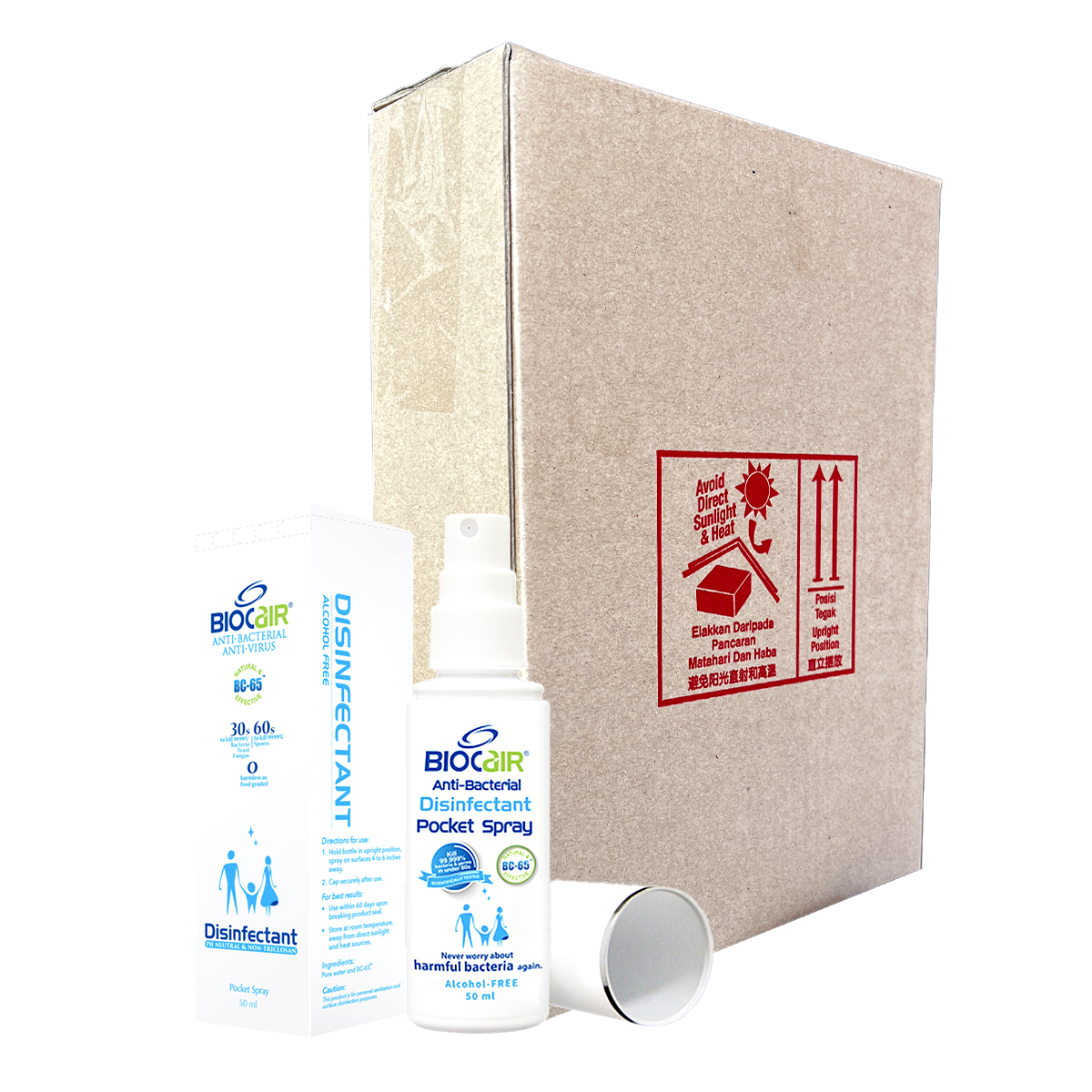 Formulated to eliminate 99.999% of harmful germs such as bacteria, viruses, fungus and spores within 60 seconds of contact, reducing the threat of common cold, E.coli, and more. Non-toxic, child-safe and alcohol-free, the Disinfectant Anti-Bacterial Pocket Spray is suitable for everyday surface disinfection, and is proven to be safe for use around children. No rinsing is required after spraying as it does not leave any residue.