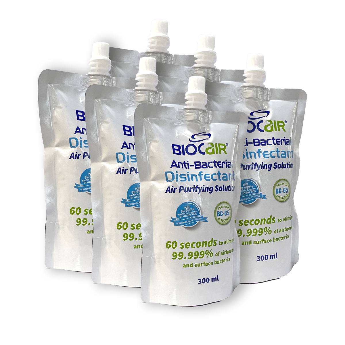 The Disinfectant Air Purifying Solution is specially formulated to kill 99.999% of common germs such as bacteria, viruses, fungus and spores that threaten the health of you and your family, all within 60 seconds of contact.