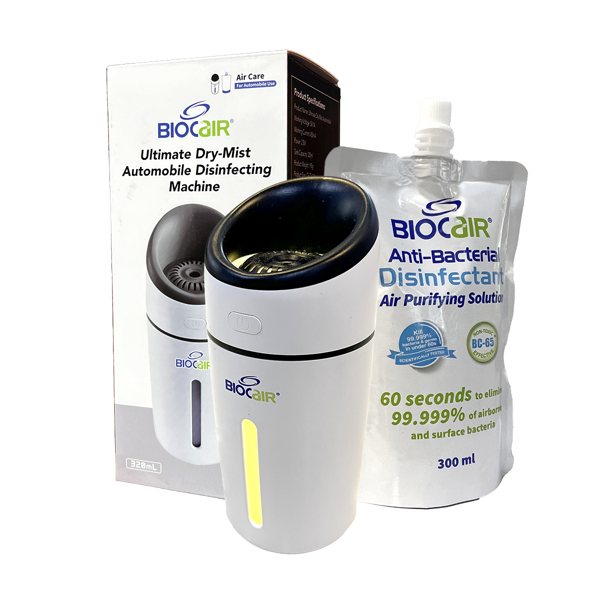 Made to be used with the Disinfectant Air Purifying Solution, the BioCair Ultimate Automobile Dry-Mist Disinfection Machine generates a dry-mist disinfectant that’s lightweight enough to stay suspended in the air to effectively eliminate airborne pathogens, before settling on nearby surfaces to get rid of any lingering germs within the car. This helps to reduce the risk of cross-contamination, which is common in shared enclosed spaces such as cars where germs can dwell for long periods of time.